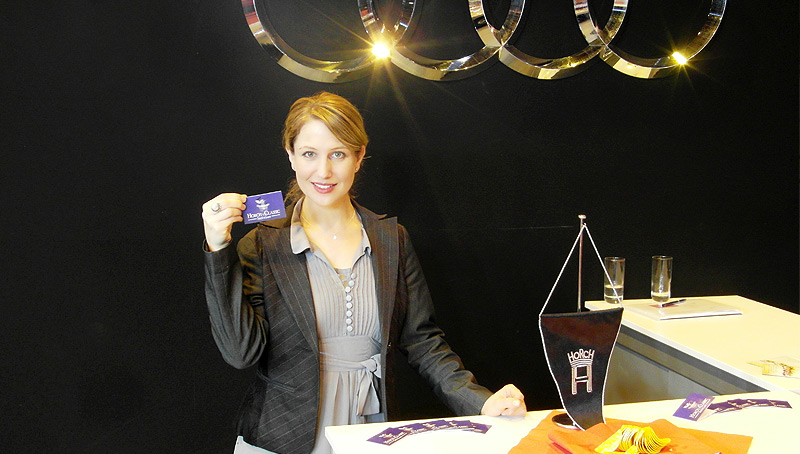 The bilingual hostess welcomes the visitor for all around the world and informs about the product.